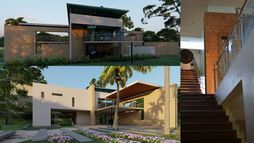 A contemporary habitat nestled in the lap of nature. A simple cruciform plan in two levels, each level connected to landscape undulating levels flanked by two beautiful Banyan Trees. The design intent was to tread lightly on the natural setting of the site while not comprimising on the comfort of the users. The floating deck sits hanging admist the coconut grove.