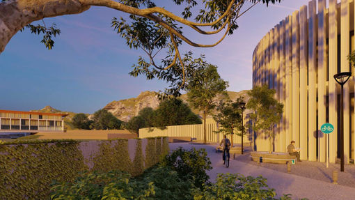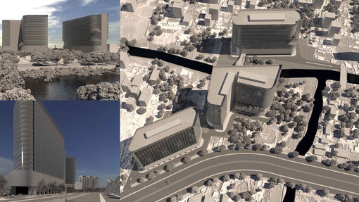 A challenging task to fit in a Sales office in a triangular residual land parcel